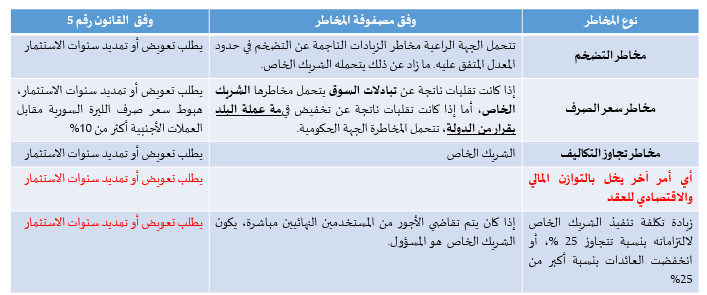 - في المادة (6) لا يجوز للجهة العامة أن تكون شريكاً في شركة المشروع، علماً أنه يوجد بنود تذكر مساهمة الجهة الحكومية صراحة (المادة 27، 29، 44).